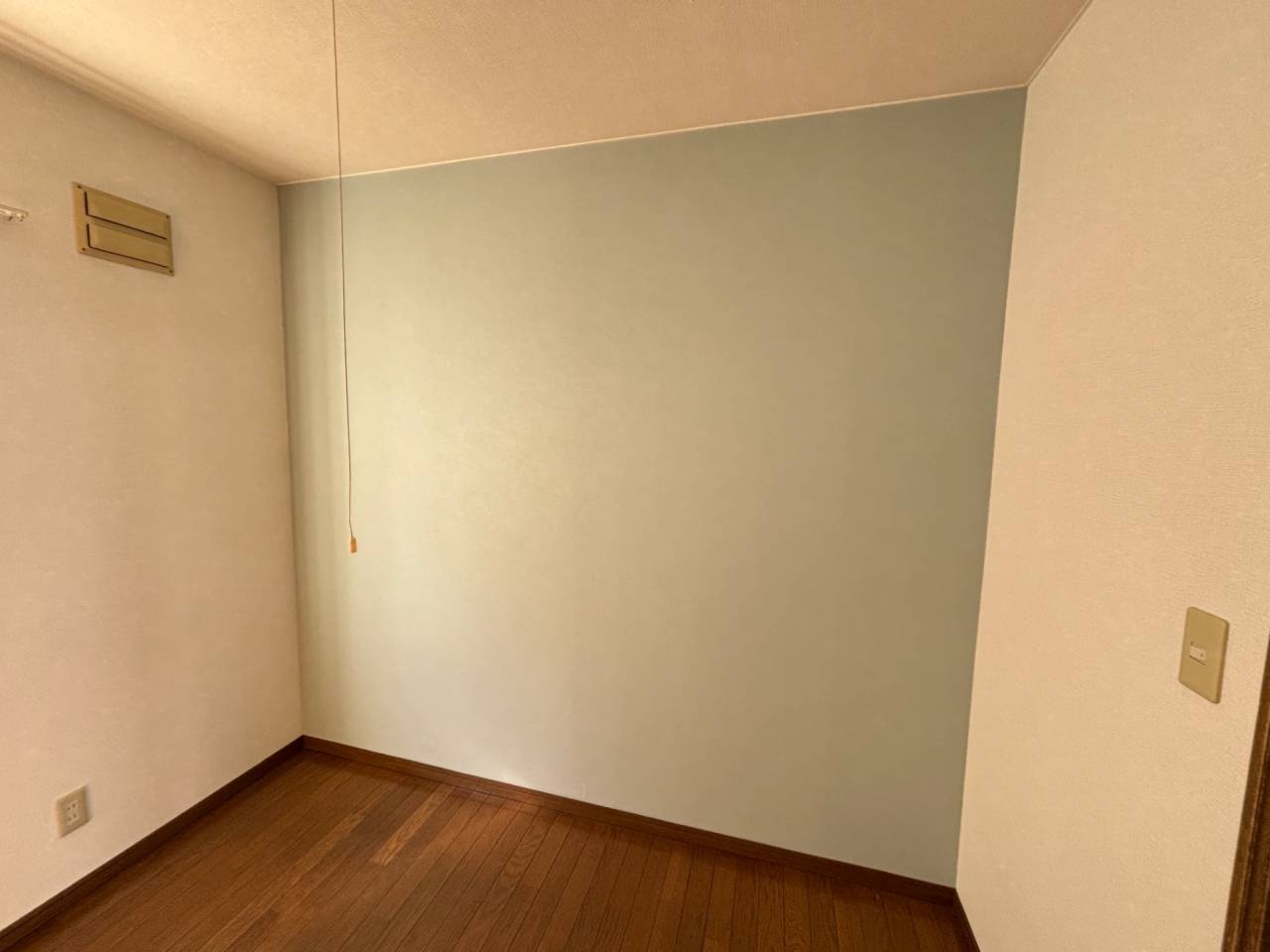 アパートのクロス張替えになります。アクセントクロスの破れがあり、洋室壁一面を張替えしました件になります。画像はビフォーアフターです。閲覧しています方はご参考にして下さい。作業時間は1時間以内で張替え可能です。引越しで現状回復が必要な方はお問合せご相談よろしくお願い致します🙇